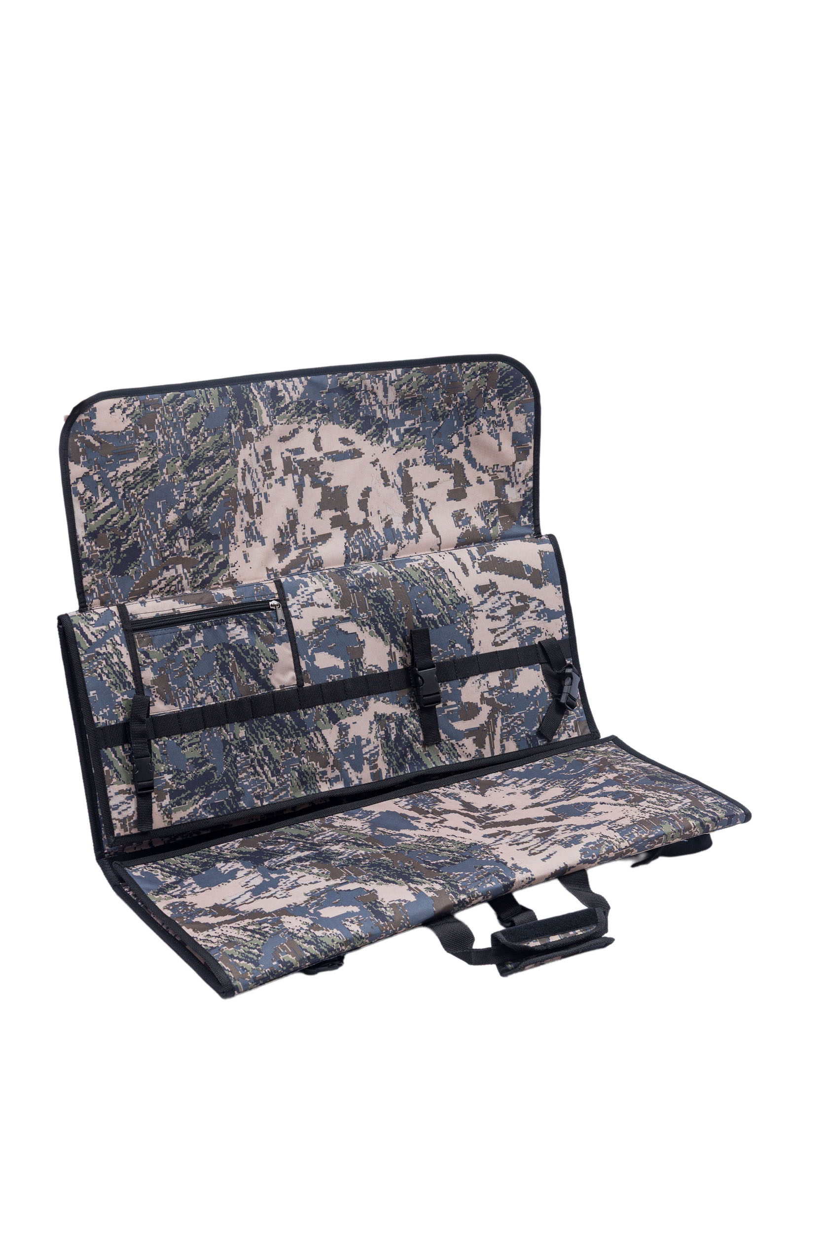 Оружие внутри фиксируется при помощи ременных стяжек, которые могут перемещаться в зависимости от оружия.
