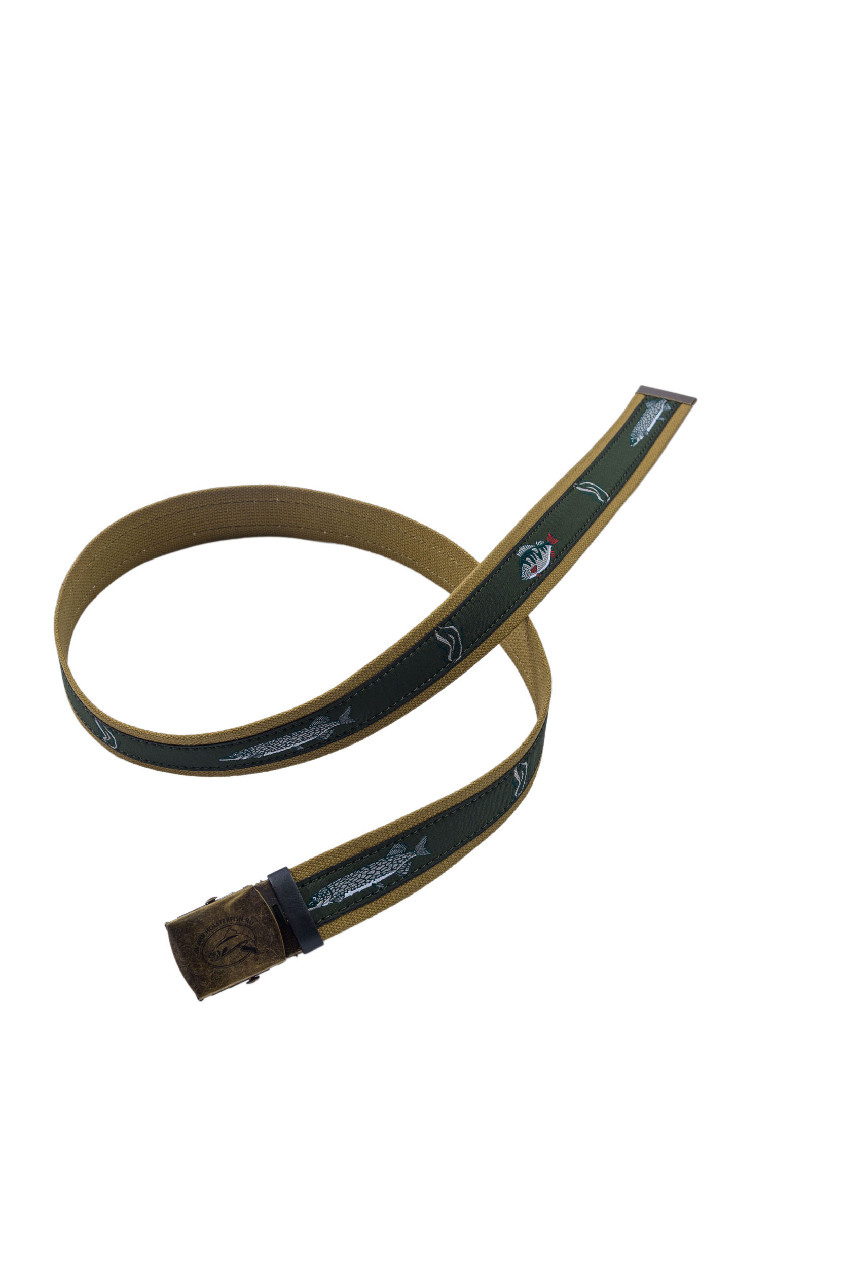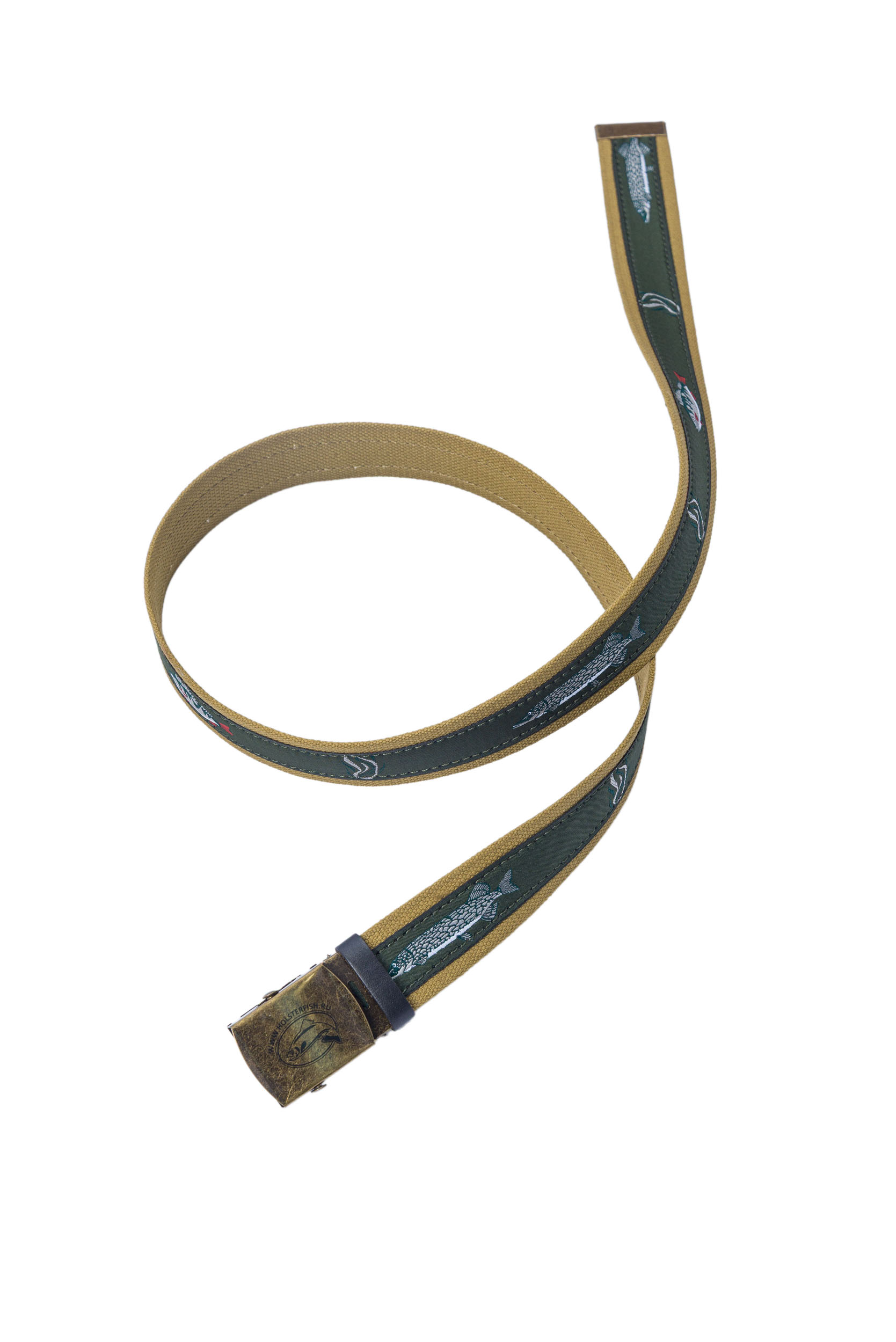 группу ремней Стандарт Fish - текстильные ремни с рисунком, с концевиками из натуральной кожи и металлической шпеньковой пряжкой